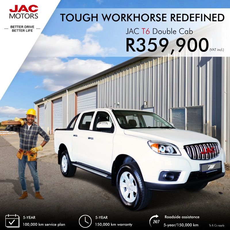 JAC T9 Deals. Save up to R70,000 on a brand new fuel-efficient JAC T9 Double Cab Bakkie.